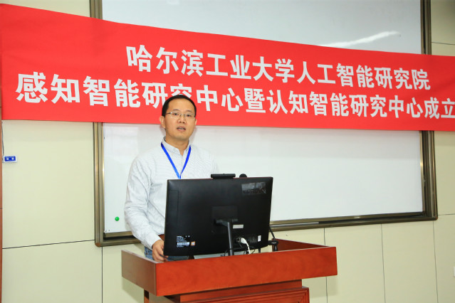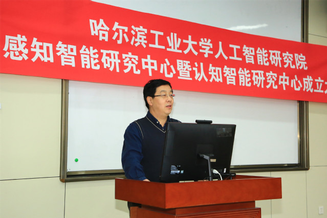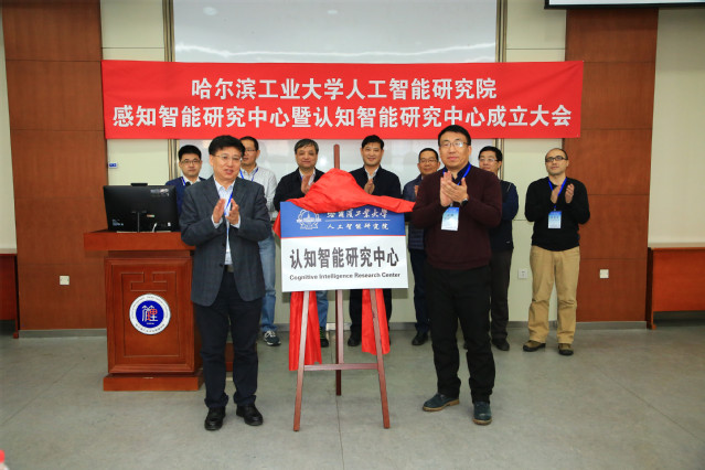 哈工大报讯(梁英爽/文 辛然/图)1月13日,我校人工智能研究院感知智能研究中心暨认知智能研究中心成立大会在科学园308举行。黑龙江省科技厅处长郎咸波出席会议并致辞,校长助理沈毅出席会议并为新成立的两个研究中心揭牌。