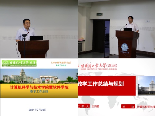 一校三区教师论坛环节,丁建睿(威海)、谷松林(威海)、夏文(深圳)、刘洋(深圳)、马琳(本部)、刘远超(本部)等六位老师围绕“课程思政与专业建设”主题进行交流报告。不同文化背景、不同管理体系的老师从课程建设、思政探索、教学实践等方面进行交流、分享,碰撞出新的灵感,迸发出思想的火花,有力推动一校三区课程建设合作,整体提升一校三区计算机教育水平。会议结束,刘挺主任为本次研讨会作总结发言。