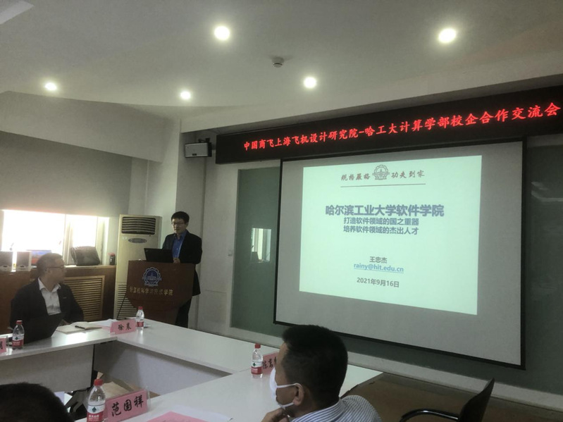 首先,王忠杰院长对上海飞机设计研究院的来访表示欢迎,并就软件学院的情况做了简单的介绍,表示哈工大软件学院要发挥人才培养的作用,着力解决软件领域的卡脖子问题,紧接着还从大型工业软件和行业应用软件两方面指出了校企合作的发展方向。随后,郭建伟部长也对上飞院的基本情况做了介绍,上海飞机设计研究院是中国商用飞机有限责任公司设计研发中心,承担着我国ARJ21、C919、CR929等型商用飞机项目的设计、试验、预研及关键技术攻关等历史使命。而此次来访的飞机电控集成工程技术所承担飞机航空电子、飞行控制、电气系统等关键核心设备的研制工作急需大量的软件专业人才,希望与哈工大雷竞技raybet登录入口共同建立校企战略合作紧密融合的长效机制,培养具有国际视野的大飞机软件专业技术人才。