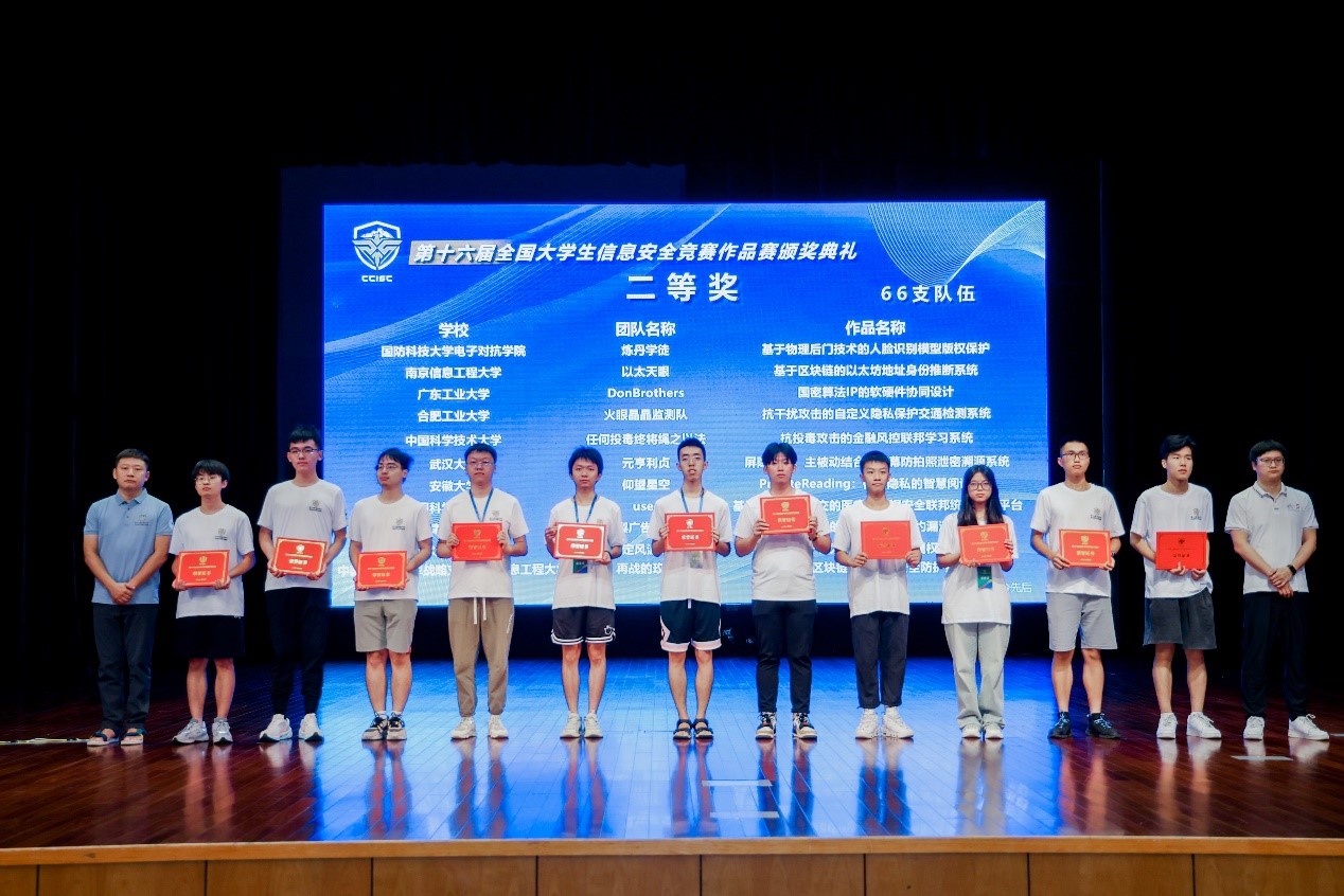 第十六届全国大学生信息安全竞赛“作品赛”由教育部高等学校网络空间安全专业教学指导委员会主办,由浙江大学和杭州电子科技大学承办,于2023年8月17日-20日在浙江大学紫金港校区举行决赛及颁奖典礼。